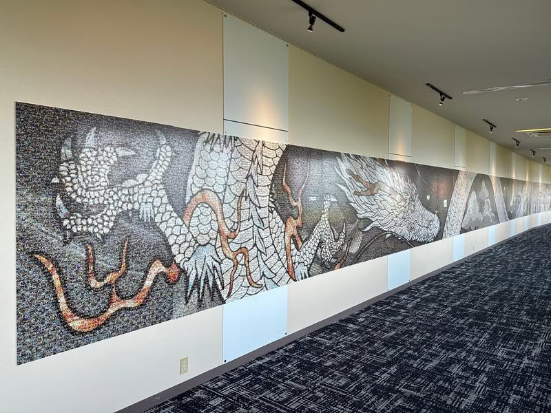 ホテルニューアカオにて、巨大な龍のモザイクアート『絆の二龍』の展示が始まりました。