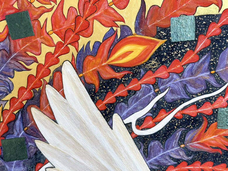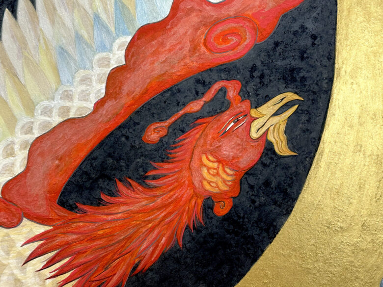 この絵を描いているときは、僕自身が変化を求められているときでした。自分自身を鼓舞するためにも鳳凰が”挑戦する力を与えてくれるよう”に、という願いを込めて描きました。