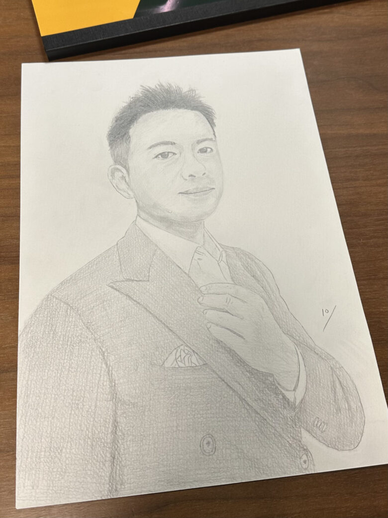 僕の自画像です。色鉛筆画。