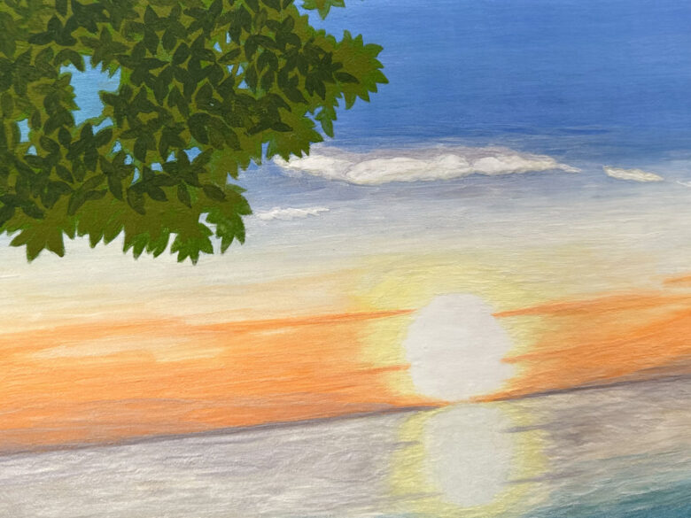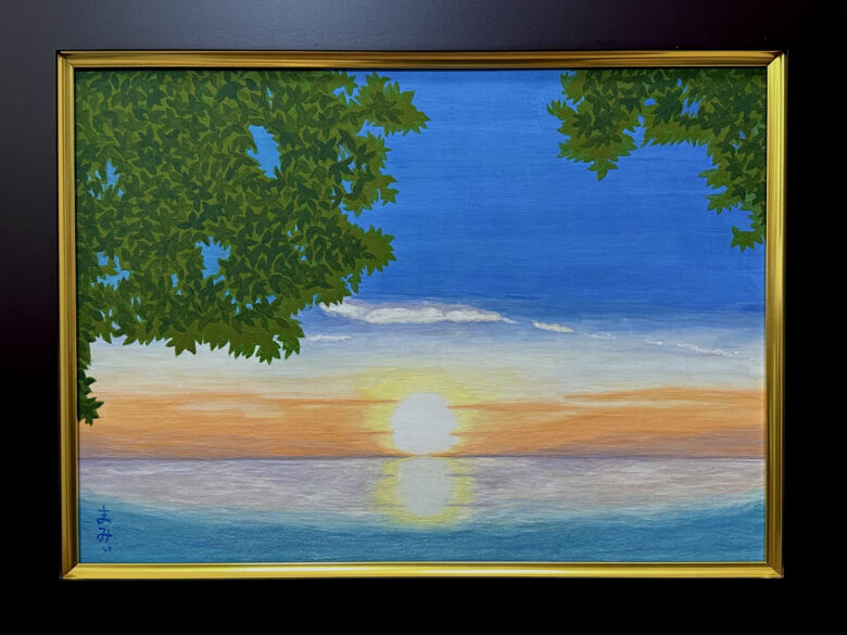 この絵を見ていると、以前バリ島に行ったときに感じた、癒やしと開放感を同じように感じます。とても優しい気持ちになれます。